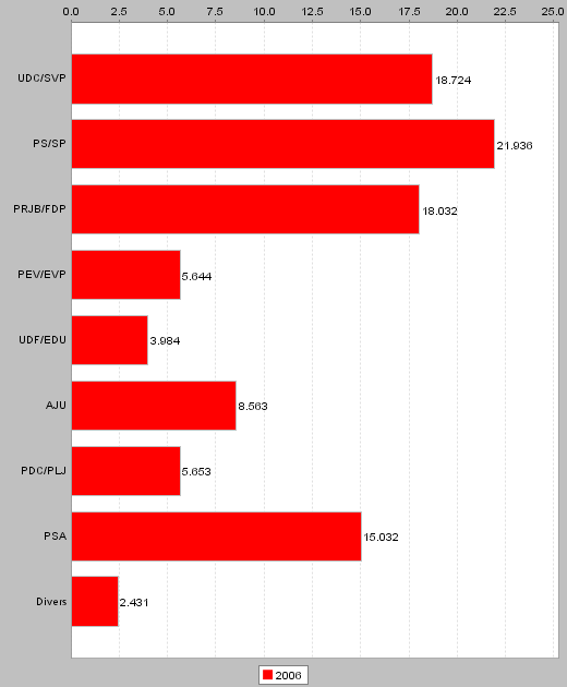 | Wahlkreise | UDC | PS | PRJB | PEV | UDF | AJU | PDC/PLJ | PSA | Divers | Total |