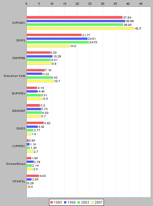 | 9 | Grüne / Les Verts | 17235 | 8.7% |