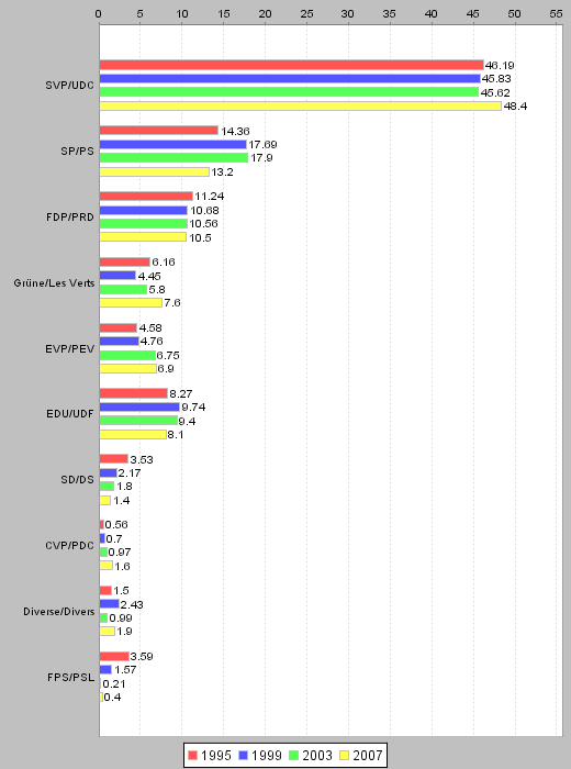 | 9 | Grüne / Les Verts | 12645 | 6.5% |