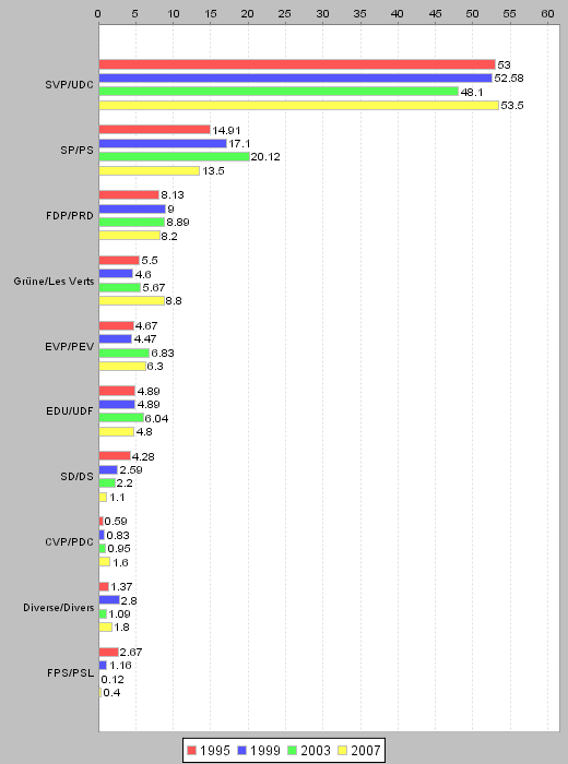 | 9 | Grüne / Les Verts | 15660 | 7.5% |