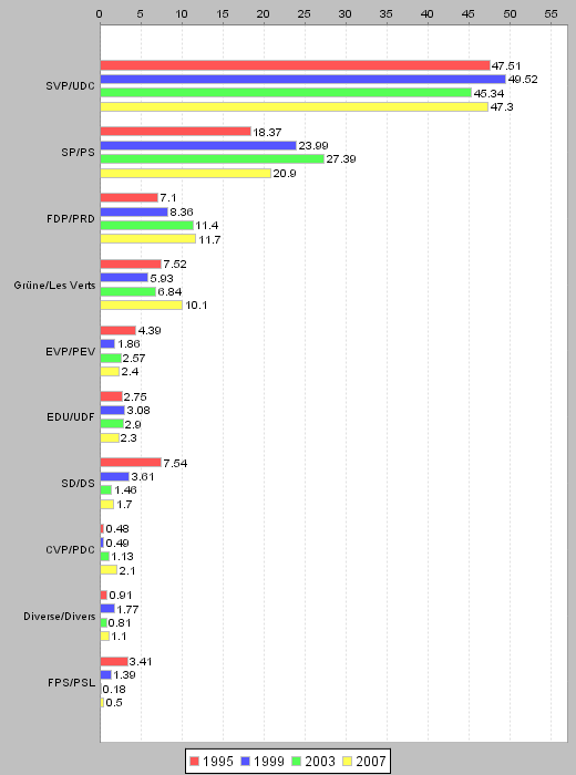 | 9 | Grüne / Les Verts | 5273 | 8.9% |
